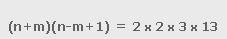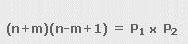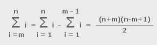 GAME OF SUMMATION - STEP 2 The next step in our game of summation is to generalize formula (1). Instead of calculating the sum of numbers between 1 and n, we can calculate the sum of numbers between m and n: (5)For m=1 formula (5) becomes formula (1): ![]() Formula (5) can be transformed into: (6)In order to calculate the numbers m and n, we'll show the number 2S as a product of factors P1 and P2: (7)For the given number S, we can have more than one pair of numbers P1 and P2, depending on prime factors of the number S. For example, for S = 78 we can write: ![]() Since the numbers n+m and n-m+1 have different parity, we have the following cases: ![]()